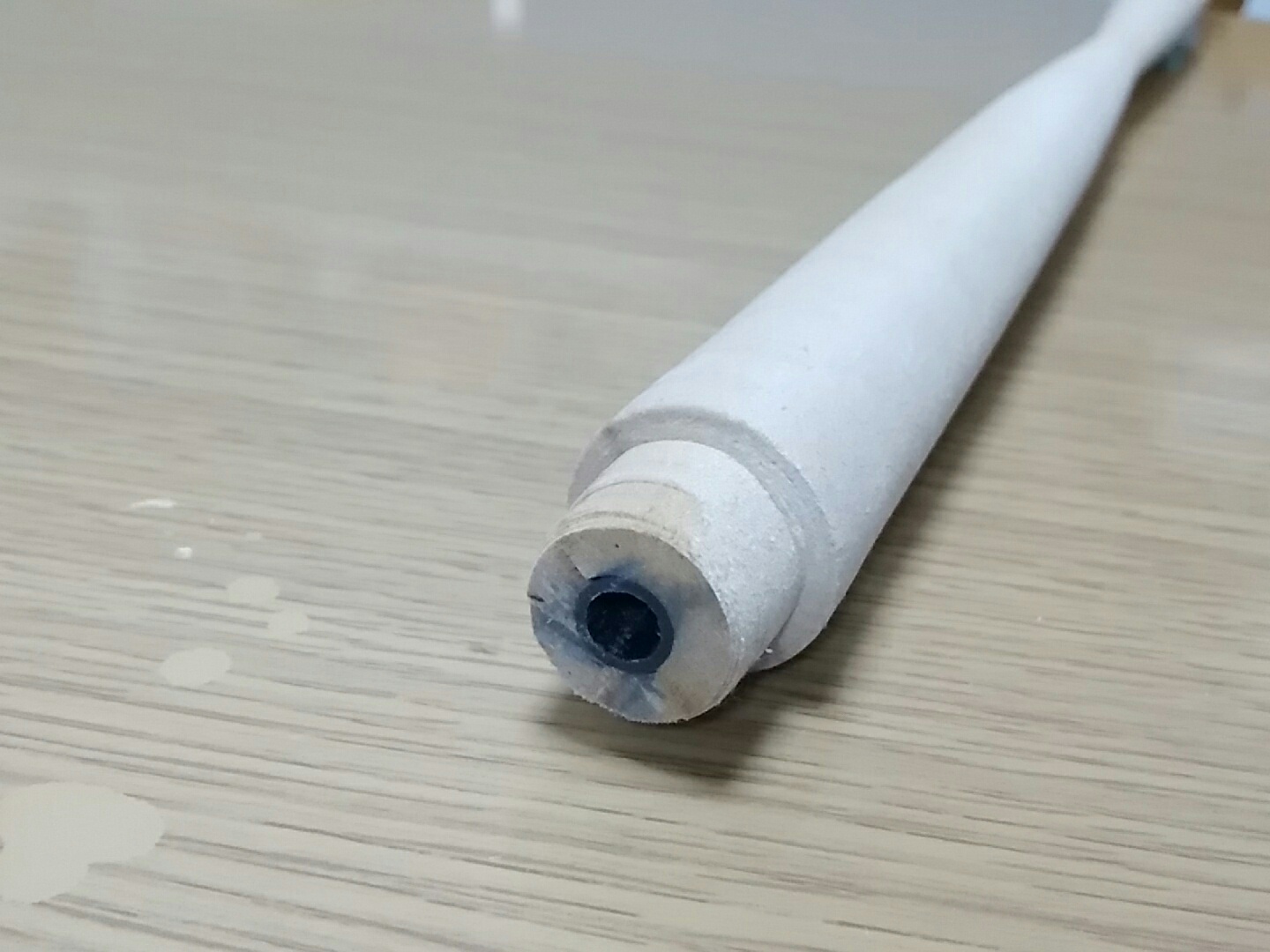 ①真円じゃない→鉛筆と同じ構造なので、接着剤が入ってる方向は削れが良くなかった。接着剤の見直し。