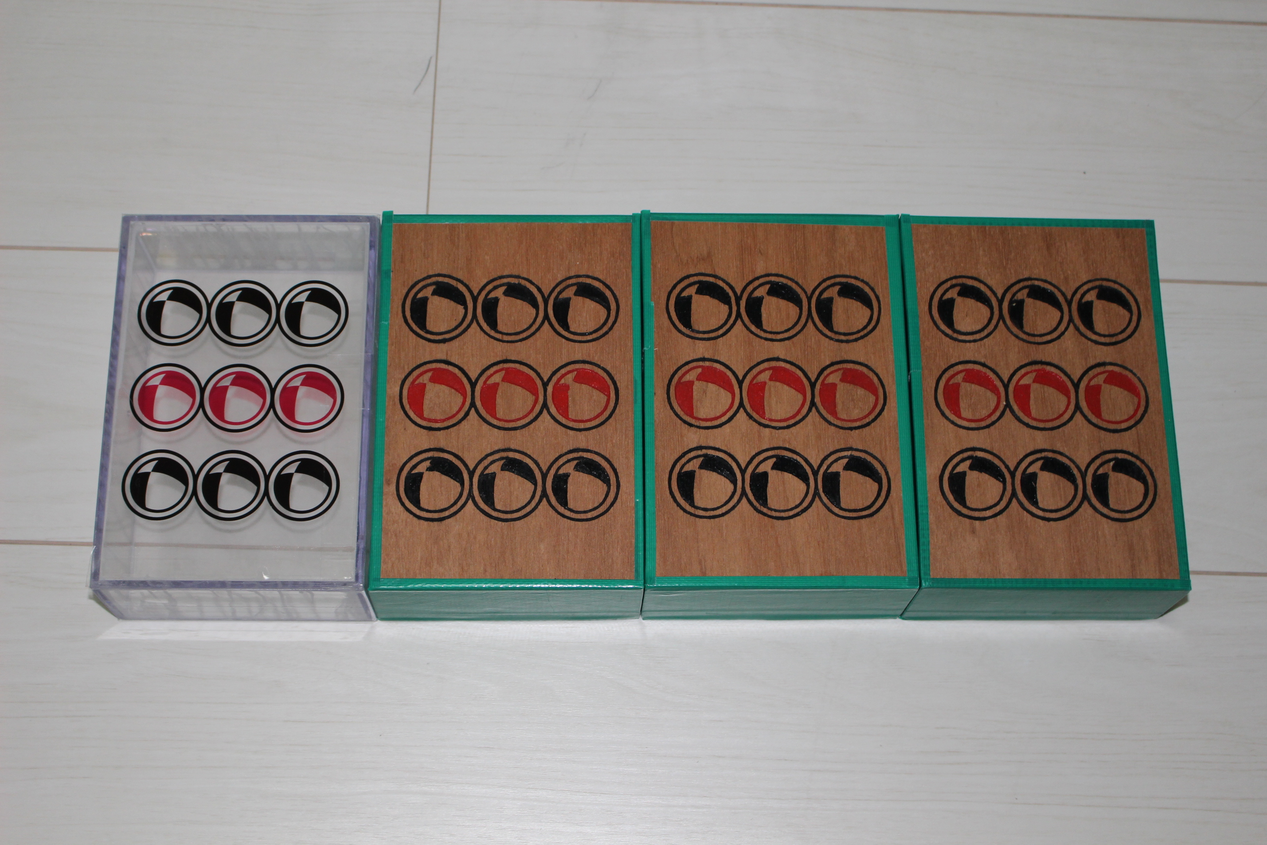 せっかくなのできぞは工房の象徴的な透明シガーボックスも組み込もうと思いまして。某有名麻雀漫画とは、反対の比率で混ぜています。(普通の牌3:透明牌1)